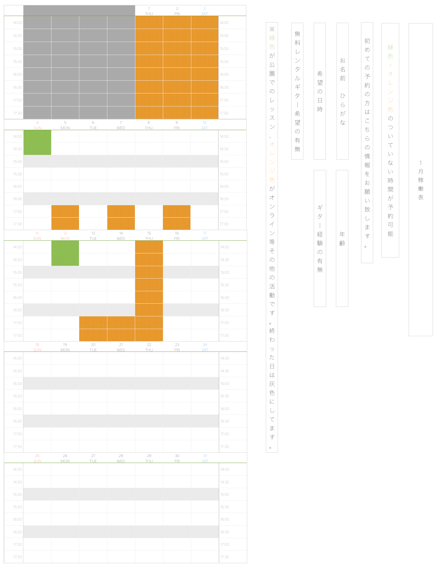 埼玉の青空ギター教室/オンラインギター教室の受付可能時間